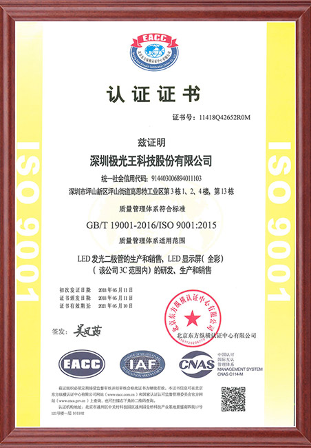 Shenzhen Kingaurora Technology Co., Ltd. was established in 2009, english name"Kingaurora". It is a national high-tech enterprise company specializing in LED packaging, LED display technology applications, and creative digital content.The company is headquartered in Pingshan New District, Shenzhen, with a registered capital of 45 million RMB.